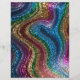 A stunning abstract design featuring layers of multicolor glitter in a wavy rainbow formation.