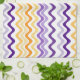 A seamless repeating surface pattern with bold wavy vertical stripes in shades of orange, lavender and purple on a white background. A retro inspired design perfect for modern kitchen decor. Available in other colors