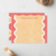 The "Wavy Lines" stationery design is bold and bright, and features a yellow and red textured background with a simple wavy line frame. Don't forget the coordinating envelope seal and spiral-bound notebook.