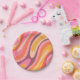 Wavy Loops Retro Abstract Pattern Pink Purple Orange Mustard. Trippy 60s 70s 80s psychedelic aesthetic. Vintage modern colors. Unique artsy cool trendy contemporary boho wavy warp groovy swirl design; bright, colorful, and with a joyful vibe. By Kierkegaard Design Studio.