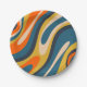 Wavy Loops Retro Abstract Pattern Blue Orange Paper Plates