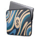 Wavy Loops Retro Abstract Pattern Initial Blue Laptop Sleeve