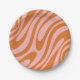 Wavy Loops Retro Abstract Pattern Pink Orange Paper Plates