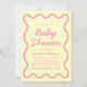 Wavy Modern Curvy Retro Pink Yellow Baby Shower Invitation