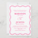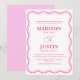 Yes, you can print on the back of your invitation for free! Most designs already have a corresponding design on the back that can be personalized using the Design Tool and going to Layers. This is a great way to communicate more information or further personalize your Wavy Pink Wedding Invitation. The option is really up to you.