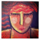 My funky abstract acrylic painting on wood of a woman with wavy red hair