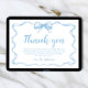 Show your appreciation with style using our Wavy Ribbon Frame Dusty Blue Bow Baby Shower Thank You Card. Adorned with a charming dusty blue bow and delicate wavy ribbon frame, this card emanates elegance and warmth. Customize it with your heartfelt words of gratitude, conveying your thanks for the thoughtful gifts and support received. Each recipient will feel truly valued and cherished as they receive this beautiful token of appreciation. Say "thank you" in a way that's as memorable as your special day with this stunning and sincere card.