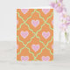 This design shows a repeating pattern of pink hearts with tiny speckles, each one outlined in white, set on a bright orange background. Pale mint green lines curl and weave between the hearts, like a loose vine that links the shapes together. The hearts look sweet and soft, with a light, sugary texture that makes them feel a bit like candy. The green lines have a slightly raised look, which adds a little depth without making the pattern feel busy. There’s no text on the card, so the hearts and colors do all the talking. The overall look feels warm, friendly, and full of affection, making it a great pick for romance or close friendship 💕❤️. Send it to someone you care about and let them know they’re on your mind this Valentine’s Day.