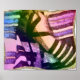 Wavy digital painting of hand and tefillin, against a tallit. Rainbow tones.