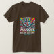 The t-shirt design features a retro-inspired graphic of the phrase "Wax On, Wax Off" in bold, stylized lettering. The design also includes a silhouette of a person performing martial arts movements, symbolizing the iconic training technique from the classic film "The Karate Kid." This playful and nostalgic design is perfect for fans of martial arts movies or anyone looking to add a touch of 80s nostalgia to their wardrobe.