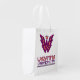 I own a lot of reusable grocery bags, but this one holds its box shape and simply stands up on its own even if there is nothing in it. Its stiffer than your regular reusable bag too, and the material is water resistant. I poured water on the exterior and it didn't penetrate inside to the other side. I'm buying a couple more. Wish I knew how durable these bags were or I would have purchased a few more with my initial order. I also like how it folds and buttons up when not in use, making it easy to put into a handbag or luggage. I haven't used this bag yet, as I purchased it for travel use, like when you're at the airport and need to small sturdy bag to place any airport purchases in, like food, souvenirs etc. I can tell you when you first see this bag, it looks very cheap, but after closer inspection of the material and the seams its a very sturdy reusable bag. I tested it out by putting some really heavy objects inside and I could not observe any stress to the bag at all. Another thing I like about it, is the fact the medium size that this is makes it easy to just carry it in your hand without the bottom of the bag scraping the ground, like most other bags do when you're short. That alone, deserves 5 stars. I just wish there were more colors to choose from! The PDX Airport Carpet printing looks just like the photo, and using this bag during travel might be a conversation piece when/if a native from Oregon happens to see it.
