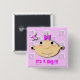 It a girl announcement button watching a butterfly.