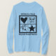 I love this shirt. I had written to the artist asking her if this picture was available on a shirt, and she wrote me back telling me where I could find the shirt. These shirts can be custom made to have a different saying. I loved this saying and went with it. The artist wrote me back later to tell me that she had seen my order go through. How's that for service? Pretty special. It's just as displayed. Perfect!