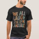 My 11 yo wore adult XL (5’7” 165#). The 8yo is small framed. She wore adult small and tied it in the back. Grandma wore adult large with long sleeve shirt underneath. Tall girl adult medium. Dark haired male adult large. Good quality dark Heather gray, Gildan brand shirt. -it was next up from basic choice and cost about $20 per shirt. Not too thick or thin. Washed and dried well, no major shrinkage. Not see-through. Can wear a bra under it fine. Screen print is just as shown and well done, front and back.