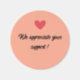 Show your customers you care with this 1.5-inch transparent sticker featuring “We appreciate your support” and charming heart designs. Perfect for small business orders, packaging, or gifts, it adds a personal, friendly touch to every shipment and boosts brand loyalty.