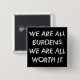 Image description: wiggly white lettering reading, "We are all burdens. We are all worth it."