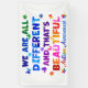 Inspirational quote of “We Are All DIFFERENT And That's BEAUTIFUL” with unique Autism puzzles, and colorful butterflies flying on the background to support and advocate Autism Awareness.