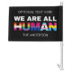 A beautiful black flag with a colorful message built with a combination of different LGBT Gay Pride flags for "We Are All Human".