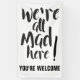 Funny Text Design by EDDA Fröhlich / EDDArt | Message: We are all mad here! | You miss other colors or products with this design? Feel free to contact me: contact@eddart.de or have a look here: www.zazzle.de/eddartiful* | Have fun and be happy :-) | Text example: YOU'RE WELCOME