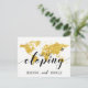 We are eloping announcement with elegant gold world map. Personalized postacr for your post elopement casual reception.