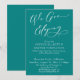 Plain white envelopes are included with paper invitations and will come to fit the invitation size you select. If you don’t need the envelopes, you may choose to not receive them by selecting the dropdown below "Envelopes" and choosing "None." If you’d like to have a design on your envelopes, you can browse all of these available envelopes to find the design that complements your We Are Eloping Simple Teal Celebration Invitation.