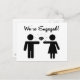 Silhouette of a male and female with a diamond in the center. Great for couples to announce engagement. Choose cards, mousepads, keyrings, mugs, t shirts and more to get the message across.