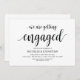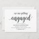 Plain white envelopes are included with paper invitations and will come to fit the invitation size you select. If you don’t need the envelopes, you may choose to not receive them by selecting the dropdown below "Envelopes" and choosing "None." If you’d like to have a design on your envelopes, you can browse all of these available envelopes to find the design that complements your We Are Getting Engaged Engagement Party Invites.