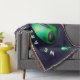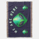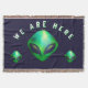 "We Are Here" Green Alien head Throw Blanket