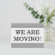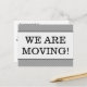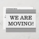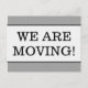 This corporate and professional change-of-address postcard design features the message "WE ARE MOVING!" on the front, and a customizable message on the back. Postcards like this could be used to inform friends and relatives that the sender has new contact details.