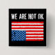 We Are Not Ok! This declaration has a grunge style, red white and blue upside down American flag which means America is in distress. It's available here on a custom button. Choose your favorite background color instead of the black if you prefer. More styles and sizes are offered. Pin them everywhere to protest Donald Trump's terrible policies!