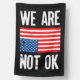 The people declare, We Are Not OK! This anti Trump protest design has a red, white and blue upside down American flag and message in a grunge style. Offered here on a house flag with a customizable background color. Fly this flag and stand up against Trump's authoritarian policies with this unique design!