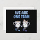 Sweet design featuring a to coffee cups in love holding hands and the quote "We are one Team". A perfect idea to tell someone that you belong together.