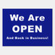 We Are Open and Back In Business Sign