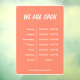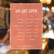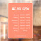 This cling is designed to help businesses make their opening hours known to potential customers. It's an easy way for customers to quickly find out what time the business is open and when they can expect to find it open.