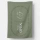 Enhance the curb appeal of your beauty salon, shop or boutique with this modern We Are Open Business Flag in sage green and white. Featuring fully editable text, a simple floral motif and space for your logo. Simple, yet elegant, business outdoor sign design that will help promote your business to passers-by.