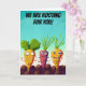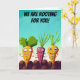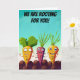 When you are not feeling well it helps to know that someone cares. Send this to your loved one who is brave in the face of an accident or illness. Outside is a literal collection of root vegetables that are cheering. The design is in graphic art, pop art style.