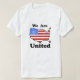 Show your patriotism with this American flag in the shape of the United States design that says, We are united.