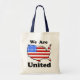 Show your patriotism with this American flag in the shape of the United States design that says, We are united.