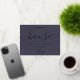 We bought a house! With a simple and minimalist real rose gold foil on navy blue elegant script font typography moving announcement.