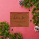 We bought a house! With a simple and minimalist real gold foil on boho terracotta elegant script font typography moving announcement.