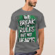 My 11 yo wore adult XL (5’7” 165#). The 8yo is small framed. She wore adult small and tied it in the back. Grandma wore adult large with long sleeve shirt underneath. Tall girl adult medium. Dark haired male adult large. Good quality dark Heather gray, Gildan brand shirt. -it was next up from basic choice and cost about $20 per shirt. Not too thick or thin. Washed and dried well, no major shrinkage. Not see-through. Can wear a bra under it fine. Screen print is just as shown and well done, front and back.