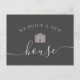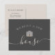Cute design, in shades of gray, features your move details in modern script calligraphy.