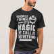 My 11 yo wore adult XL (5’7” 165#). The 8yo is small framed. She wore adult small and tied it in the back. Grandma wore adult large with long sleeve shirt underneath. Tall girl adult medium. Dark haired male adult large. Good quality dark Heather gray, Gildan brand shirt. -it was next up from basic choice and cost about $20 per shirt. Not too thick or thin. Washed and dried well, no major shrinkage. Not see-through. Can wear a bra under it fine. Screen print is just as shown and well done, front and back.