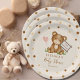 Let your baby shower guests enjoy cake and party food off these beary cute teddy bear themed paper plates. These plates can be easily personalized with mom-to-be's name and baby shower date. Part of the 'We Can Bearly Wait' baby shower collection. Check it out for some more inspiration and goodies.