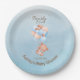 These Cute Teddy Bear plates are perfect for any baby shower with a bear theme. They are made of paper and has a watercolor graphic of a bear with balloons. . These plates are also personalized with mom to be name and date, and the words we can bearly wait,