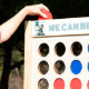 This cute baby shower fast four design features an adorable watercolor teddy bear with balloons in a heart shape and personalizable blue and black typography "we can bearly wait" customizable typography.