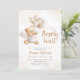 Celebrate the upcoming arrival of your little one with this adorable "We Can Bearly Wait" baby shower invitation! Featuring a sweet watercolor teddy bear floating with brown balloons, surrounded by soft clouds, this design is perfect for a baby boy shower or a gender-neutral sky-themed party.