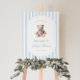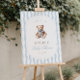 Welcome guests with timeless charm. This grandmillennial baby shower sign features soft watercolor stripes, a vintage teddy bear, and elegant typography — the perfect first impression for a classic celebration.
