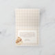 Send your heartfelt gratitude with this charming We Can Bearly Wait baby shower folded thank you card. Featuring a cozy watercolor teddy bear floating in a beige balloon basket, a sleeping bear on a fluffy cloud, soft neutral tones, and a classic gingham border, this sweet and gender-neutral design pairs perfectly with a teddy bear-themed celebration. A timeless way to thank your loved ones for their support and gifts!