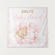 We Can Bearly Wait Girl Baby shower backdrop - tapestry. The soft pastel pink, ivory and beige colors with a cute sleeping baby bear girl on the clouds with the balloons is just so adorable for a baby girl's baby shower. Easily personalize the text. Great for a baby girl shower party whole year round. Matching items are available in my store. Kate Eden Art